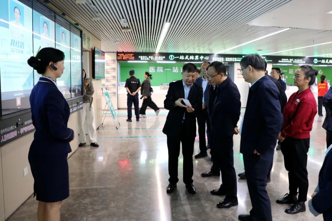 市人大趙耀嵩副主任一行首先聽取了市二院黨委書記魏松的工作匯報(bào)。魏松書記結(jié)合PPT內(nèi)容,圖文并茂介紹了醫(yī)院在優(yōu)化服務(wù)流程、檢驗(yàn)結(jié)果互認(rèn)、方便群眾就醫(yī)、醫(yī)保基金監(jiān)管、投訴端關(guān)口前移等方面的主要做法,表示醫(yī)院自開展集中整治活動開展以來,通過一系列舉措,實(shí)現(xiàn)了患者就醫(yī)多項(xiàng)業(yè)務(wù)“一次到位”,價格公開、服務(wù)可查、投訴可追,醫(yī)院就診人次明顯上升,患者醫(yī)療費(fèi)用、群眾投訴顯著下降,群眾滿意度大幅提升。同時,市人大視察組一行實(shí)地觀摩了病人一站式服務(wù)中心、醫(yī)保一站式結(jié)算中心和人臉識別掛號系統(tǒng)。隨后,視察組一行來到二樓內(nèi)科門診,現(xiàn)場觀看了患者檢驗(yàn)結(jié)果互認(rèn)的操作流程。