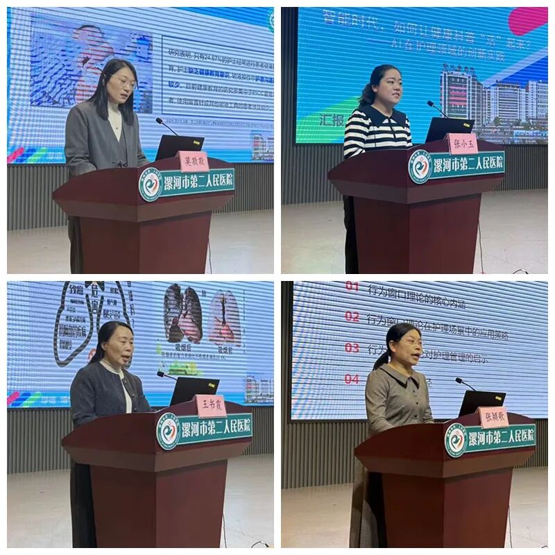 在學(xué)術(shù)交流環(huán)節(jié),多位護(hù)理專家圍繞健康教育的新理念、新方法與新技術(shù)展開深入探討。市二院護(hù)理部主任高凱霞分享了《健康教育在護(hù)理質(zhì)量與安全管理中的核心作用》;市中心醫(yī)院護(hù)理部副主任劉素紅講解了《基于賦能理論構(gòu)建三級(jí)醫(yī)院健康教育護(hù)士健康素養(yǎng)提升路徑》;市六院護(hù)理部副主任崔臻以《賦能·融合——構(gòu)建新時(shí)代醫(yī)院護(hù)理健康教育體系的實(shí)踐與思考》為題進(jìn)行交流;臨潁縣人民醫(yī)院護(hù)理部副主任張潁歌介紹了《基于行為窗口理論的護(hù)士高效能溝通技巧》;市二院普外科護(hù)士長(zhǎng)王書霞圍繞《腫瘤患者營(yíng)養(yǎng)與身心健康:吃出健康,動(dòng)出活力》展開講解;麻醉手術(shù)部副護(hù)士長(zhǎng)莫敬敬探討了《基于指南的靜脈治療健康教育及溝通模式》;小兒外科骨干護(hù)士張小玉則就《智能時(shí)代,如何讓健康科普“活”起來(lái)?——AI在護(hù)理領(lǐng)域的創(chuàng)新實(shí)踐》進(jìn)行分享。專家們結(jié)合臨床實(shí)例,展示了健康教育的最新成果與實(shí)踐經(jīng)驗(yàn),內(nèi)容充實(shí),視角多元,為參會(huì)者帶來(lái)深刻啟發(fā)。