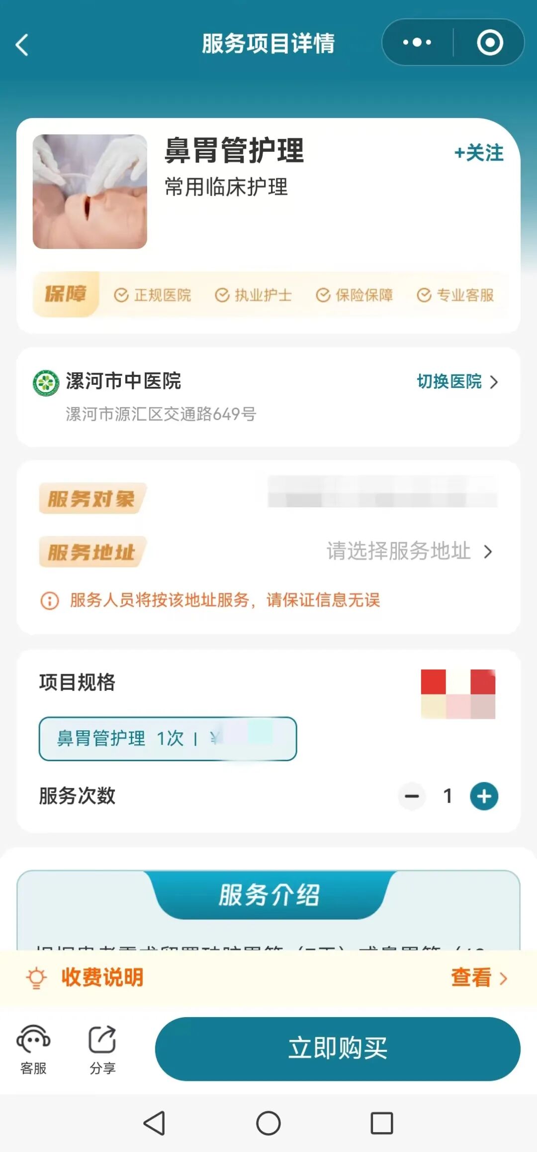 填寫信息: 選擇項目規(guī)格,填寫“服務(wù)對象”信息與“服務(wù)地址”(首次使用需實名認(rèn)證)