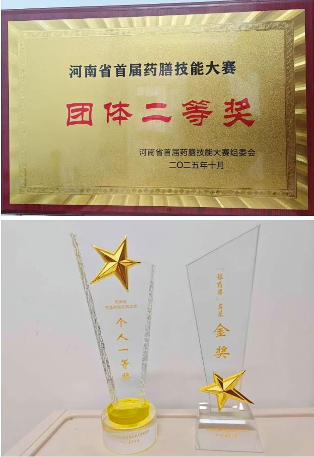 2025 年10月22日至24日,河南省首屆藥膳技能大賽在南陽(yáng)市醫(yī)圣文化園隆重舉辦。在這場(chǎng)高規(guī)格賽事中,漯河市中醫(yī)院參賽隊(duì)伍憑借深厚的中醫(yī)藥底蘊(yùn)與精湛的烹飪技藝嶄露頭角,取得優(yōu)異成績(jī),摘得數(shù)座獎(jiǎng)杯,成為賽事中的最亮眼存在。藥學(xué)部白冰制作的金湯萸杞護(hù)肝盞憑借獨(dú)特的創(chuàng)意及絕佳口感與科學(xué)的養(yǎng)生功效,脫穎而出,榮獲 “豫藥膳名菜” 金獎(jiǎng)第一名,成為本次大賽的焦點(diǎn)之作。