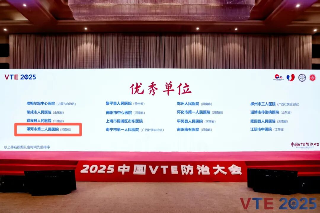 2025年10月31日,由全國肺栓塞和深靜脈血栓形成防治能力建設(shè)項目辦公室、協(xié)同醫(yī)療健康基金會聯(lián)合主辦的“2025年中國VTE防治大會”在北京成功舉行。會上,漯河市第二人民醫(yī)院憑借扎實的防治成效與規(guī)范的管理體系,被授予“全國肺栓塞和深靜脈血栓形成防治能力建設(shè)項目優(yōu)秀單位”稱號。副院長張曉東代表醫(yī)院參會并接受授牌,這也是當(dāng)前漯河市域內(nèi)唯一通過此項國家評審的醫(yī)療機(jī)構(gòu)。