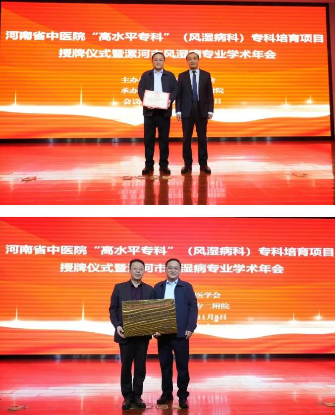 會(huì)上,王齊超院長(zhǎng)代表漯河醫(yī)專二附院為孟慶良教授頒發(fā)特聘專家聘書。孟慶良教授代表河南省中醫(yī)院為漯河醫(yī)專二附院“高水平???rdquo;(風(fēng)濕病科)??婆嘤?xiàng)目授牌。此次授牌搭建起河南省中醫(yī)院與漯河醫(yī)專二附院的??乒步蛄海粌H將推動(dòng)漯河地區(qū)風(fēng)濕病??频捏w系化發(fā)展,更有望通過中西醫(yī)結(jié)合診療模式的深化,為我市風(fēng)濕病患者帶來更優(yōu)質(zhì)、便捷的醫(yī)療資源。