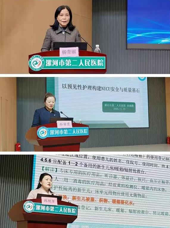 學(xué)術(shù)交流環(huán)節(jié),市中心醫(yī)院NICU護(hù)士長楊青麗以《新生兒低血糖臨床規(guī)范管理專家共識》(2021)為題,系統(tǒng)闡述了新生兒低血糖的“預(yù)防、篩查、干預(yù)、隨訪”四個重點;市二院護(hù)理部副主任孫麗霞分享了《以預(yù)見性護(hù)理構(gòu)建NICU安全與質(zhì)量基石》,點明預(yù)見性護(hù)理是NICU生命安全保障的基石,也是質(zhì)量持續(xù)提升的第一道防線;市二院感控辦副主任韓艷軍以《新生兒病區(qū)醫(yī)院感染預(yù)防與控制標(biāo)準(zhǔn)》進(jìn)行了交流,闡明要嚴(yán)守感控標(biāo)準(zhǔn),筑牢安全防線,保障每一位新生兒的健康與安全;市婦幼保健院兒科護(hù)士長鄭文韜以《高危兒靜脈通路的合理選擇》展開,講解了高危兒靜脈通路的選擇,核心在于基于個體評估,實現(xiàn)安全與療效的最佳平衡;市二院靜療??谱o(hù)士李艷結(jié)合《兒童靜療常見并發(fā)癥的預(yù)防及處理》,提出兒童靜療安全,核心在于以預(yù)防為首;市二院傷口造口??谱o(hù)士馬美華分享了《兒童常見皮膚護(hù)理與管理》,闡述嚴(yán)守預(yù)防底線,踐行精細(xì)照護(hù),是守護(hù)新生兒稚嫩肌膚、避免醫(yī)源性皮膚損傷的根本之道。