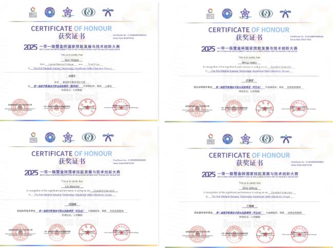 學校代表隊憑借扎實的專業(yè)知識、嫻熟的操作技能和穩(wěn)定的賽場發(fā)揮,在多個賽項中表現搶眼:胡巧同學在“醫(yī)學圖像后處理”賽項中勇奪一等獎;皇巧梅同學在“CT檢查技術及診斷”賽項中同樣摘得一等獎;仝鑫琦同學在“X攝影檢查及診斷”賽項中獲二等獎;李印同學在“超聲檢查技術”賽項中獲三等獎。