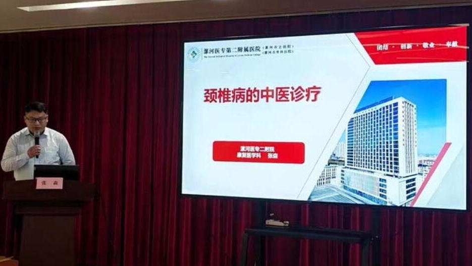 漯河醫(yī)專二附院康復醫(yī)學科主治醫(yī)師張森圍繞《頸椎病的中醫(yī)診療》開始講述。主要診療以“辨證施治、標本兼顧”為原則:辨證常見寒濕阻絡、氣滯血瘀、肝腎虧虛、氣血不足四型,通過望聞問切精準分型;治療以通經(jīng)活絡、散寒止痛、補益肝腎為核心,常用針灸、中藥內服,配合艾灸、拔罐、牽引等外治法,同時強調避風寒、調姿勢、練功法的日常調護,從根源改善頸部氣血運行與筋骨功能。