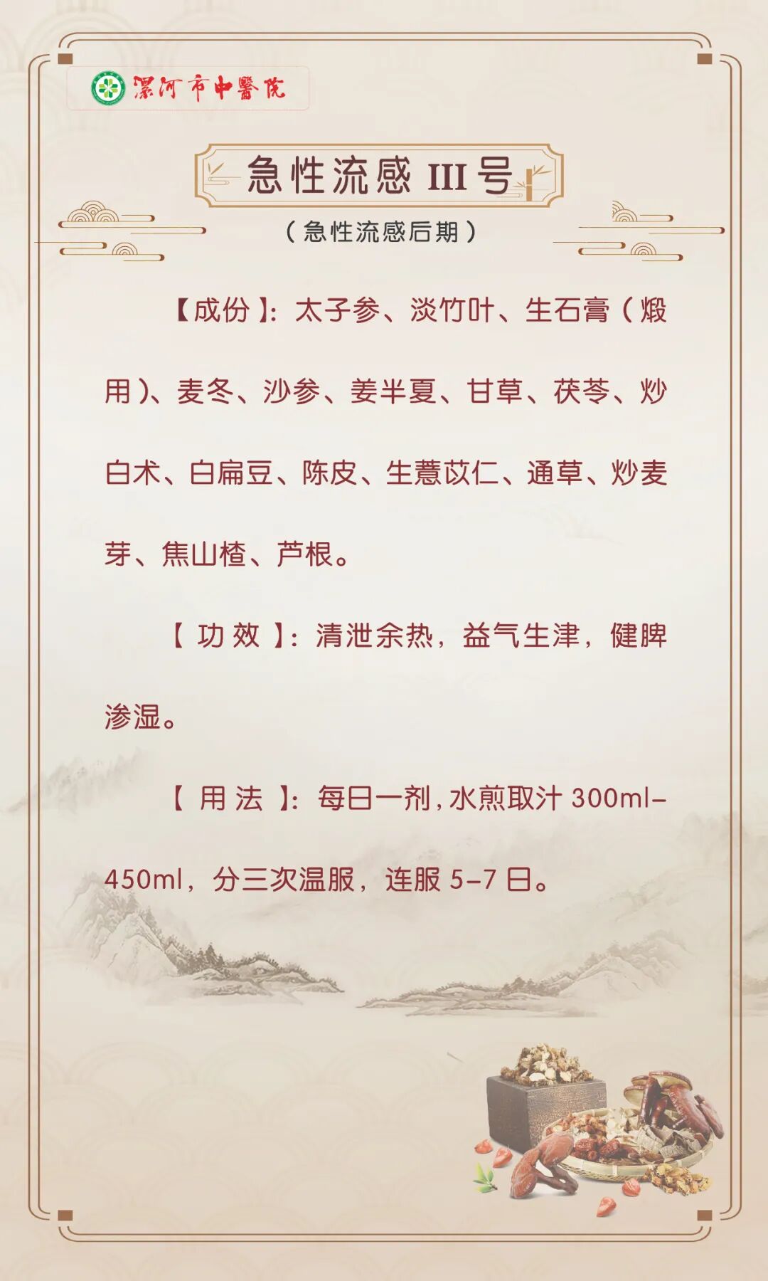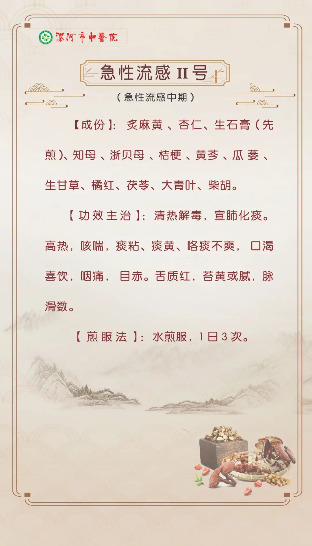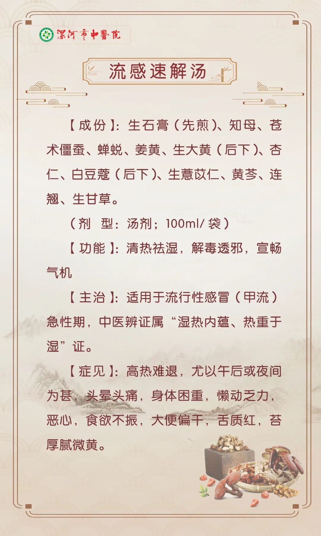漯河市中醫(yī)院“流感”中醫(yī)藥防治處方發(fā)布