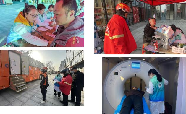 在紀(jì)委書記劉國鋒的帶領(lǐng)下,來自內(nèi)科、超聲科、醫(yī)學(xué)影像科等科室的骨干醫(yī)護(hù)組建專項志愿者團(tuán)隊,針對外賣小哥長期騎行、作息不規(guī)律的職業(yè)特性,定制了“高效精準(zhǔn)”的健康篩查方案——不僅涵蓋心電圖、甲狀腺彩超、血壓檢測、骨密度檢測等基礎(chǔ)項目,更調(diào)配院內(nèi)先進(jìn)移動CT車進(jìn)駐,讓小哥無需中斷工作,利用送餐間隙就能完成全方位健康評估。