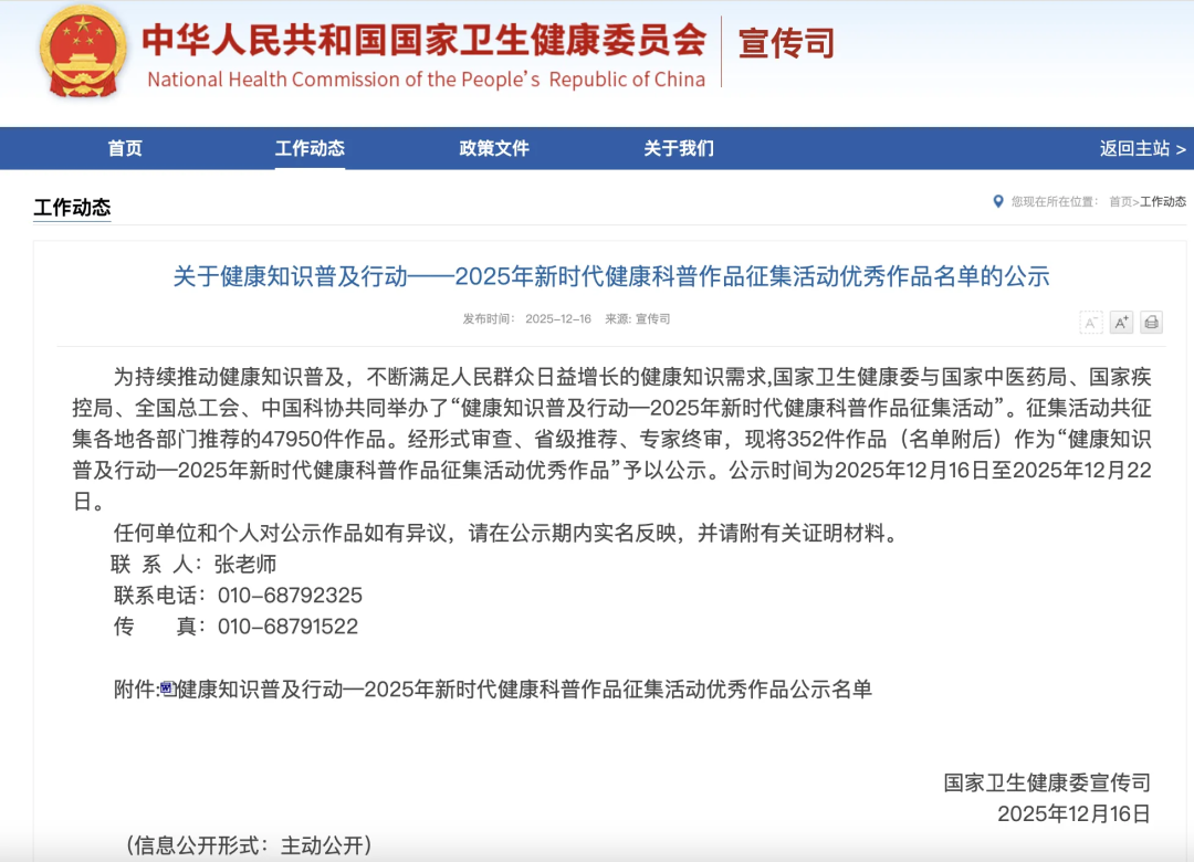 近日,由國家衛(wèi)生健康委與國家中醫(yī)藥局、國家疾控局、全國總工會(huì)、中國科協(xié)共同舉辦了“健康知識(shí)普及行動(dòng)--2025 年新時(shí)代健康科普作品征集活動(dòng)”。經(jīng)形式審查、省級(jí)推薦、專家終審,市中醫(yī)院包亞沖、朱曉晴、李靜、劉俊杰團(tuán)隊(duì)精心創(chuàng)作的健康科普作品《新中式女子四季養(yǎng)生》,從全國近5萬部參賽作品中脫穎而出,斬獲國家級(jí)“優(yōu)秀作品”獎(jiǎng),成為本次大賽中漯河市唯一獲此國家級(jí)殊榮的作品。