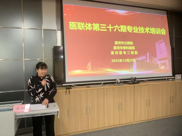 為持續(xù)深化醫(yī)聯(lián)體建設(shè),推動(dòng)優(yōu)質(zhì)醫(yī)療資源下沉,提升基層醫(yī)務(wù)人員專業(yè)技術(shù)水平,12月27日,漯河醫(yī)專二附院(漯河市骨科醫(yī)院、漯河市立醫(yī)院)舉辦第三十六期醫(yī)聯(lián)體專業(yè)技術(shù)培訓(xùn)會(huì),來自召陵區(qū)、郾城區(qū)、源匯區(qū)、開發(fā)區(qū)等醫(yī)聯(lián)體單位醫(yī)務(wù)人員參加此次培訓(xùn)。