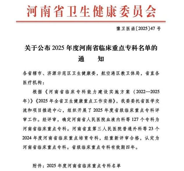 此次兩個專科成功獲評省級臨床重點??疲扔∽C了漯河醫(yī)專二附院在??平ㄔO上的厚積薄發(fā),更為區(qū)域醫(yī)療發(fā)展注入新動能。醫(yī)院將繼續(xù)堅持從人民群眾健康需求出發(fā),進一步提高臨床??乒芾矸漳芰蛯I(yè)影響力,打造更多的省級、市級重點???,完善全方位、全周期的醫(yī)療服務,不斷增強人民群眾的健康幸福感、獲得感和滿意度,持續(xù)為醫(yī)院高質(zhì)量發(fā)展注入強大動力,為漯河及周邊百姓提供更全面的健康保障。(盧 闖 劉 旭 袁錦鈺)