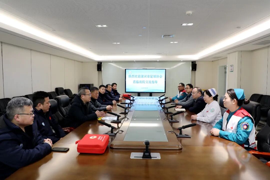 在隨后的交流座談會上,市足協(xié)主席張運(yùn)華介紹了漯河市足球運(yùn)動發(fā)展現(xiàn)狀,特別強(qiáng)調(diào)了專業(yè)醫(yī)療保障對賽事安全的重要性。水源足球隊領(lǐng)隊分享了與醫(yī)院在運(yùn)動員健康管理方面的合作成果。市二院副院長張曉東介紹了醫(yī)院在急診急救、運(yùn)動醫(yī)學(xué)等方面的專業(yè)優(yōu)勢。三方就未來合作達(dá)成共識,計劃在急救培訓(xùn)、健康科普、賽事保障等方面深化合作,共同推動漯河市體育事業(yè)和醫(yī)療衛(wèi)生事業(yè)協(xié)同發(fā)展。