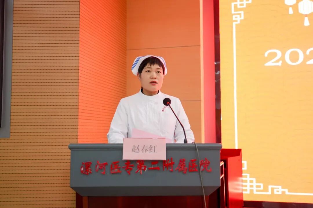 最后,護(hù)理部主任趙春紅作總結(jié)發(fā)言。她全面回顧了本實(shí)習(xí)周期護(hù)理教學(xué)工作的開展情況,詳細(xì)梳理了實(shí)習(xí)生們從懵懂青澀到熟練干練的成長蛻變,對全體帶教老師的辛勤付出、無私奉獻(xiàn)以及實(shí)習(xí)生們的刻苦鉆研、努力拼搏給予了高度評價(jià)與充分肯定。同時(shí),趙主任也為即將踏上職業(yè)新征程的實(shí)習(xí)生們指明了前進(jìn)方向、寄予了殷切期望。她提到,護(hù)理工作肩負(fù)著“健康所系、性命相托”的神圣使命,是一份需要愛心、耐心、細(xì)心與責(zé)任心的職業(yè),希望同學(xué)們帶著本次大會(huì)的榮譽(yù)與囑托,帶著在二附院收獲的知識(shí)與成長,在未來的護(hù)理崗位上堅(jiān)守醫(yī)者初心、精進(jìn)專業(yè)技能,永葆愛心與溫度,以專業(yè)能力守護(hù)人民健康,以人文關(guān)懷傳遞醫(yī)者大愛,努力在護(hù)理事業(yè)的廣闊舞臺(tái)上實(shí)現(xiàn)自我價(jià)值、書寫精彩篇章。