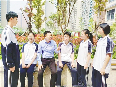 王曉濤(左三)與學(xué)生交流。