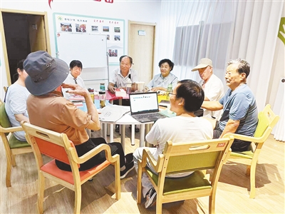 為什么要在一起讀書?“我們就住在附近。雖然退休了,但大家一致認(rèn)為要堅(jiān)持學(xué)習(xí),跟上時(shí)代步伐。我們經(jīng)常聚在一起讀書,不僅學(xué)習(xí)中華優(yōu)秀傳統(tǒng)文化,還集體閱讀時(shí)事新聞、保健知識、生活常識等方面的內(nèi)容,并交流心得、分享體會。”82歲的王浩山說,后來,他們就把讀書會固定到每周二、周五下午3點(diǎn)至5點(diǎn)舉辦,自愿參加。讀書會多則七八人、少則四五人,氛圍很好。