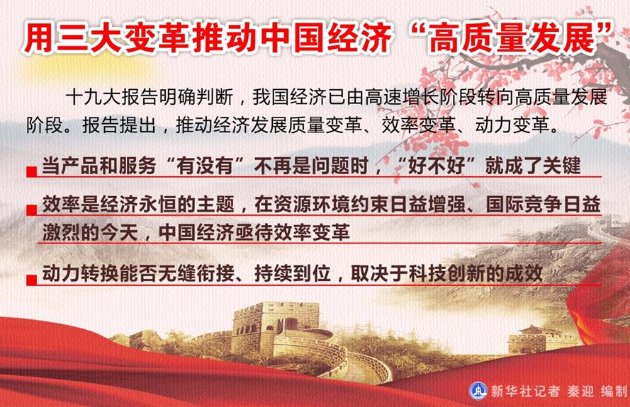 圖表:用三大變革推動中國經(jīng)濟“高質(zhì)量發(fā)展” 新華社記者 秦迎 編制