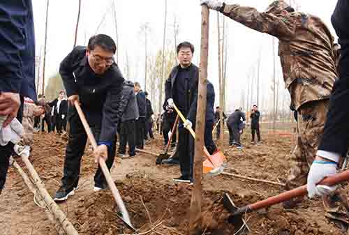 劉尚進(jìn)、李亦博、李思杰、楊驍、蔣志安、高喜東、周新鶴、張宏進(jìn)、辛偉、陳平、周學(xué)功、栗社臣、余偉、呂娜、徐匯川、閆天常、胡新峰、宗萬(wàn)志、田冠亭及市中級(jí)人民法院院長(zhǎng)陳松林、市人民檢察院檢察長(zhǎng)陳連東與市直及駐漯各單位主要負(fù)責(zé)人,市教育、衛(wèi)生、工商、公安、青年志愿者等社會(huì)各界代表600余人,來(lái)到沙河國(guó)家濕地公園合理利用區(qū)內(nèi)參加義務(wù)植樹(shù)活動(dòng)。植樹(shù)活動(dòng)現(xiàn)場(chǎng)一派熱火朝天的景象,有的移苗扶苗,有的揮鍬鏟土,有的踩土壓實(shí),有的拎桶澆水,不大一會(huì)兒就植下一片新綠。