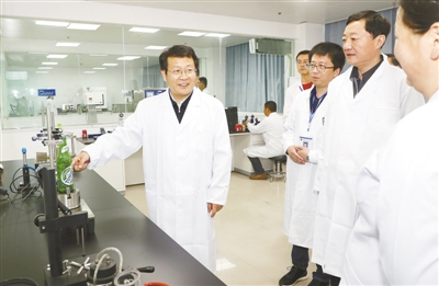 4月22日,市委書記蒿慧杰在國家肉制品檢測中心調(diào)研指導(dǎo)。記者 王慶建 攝