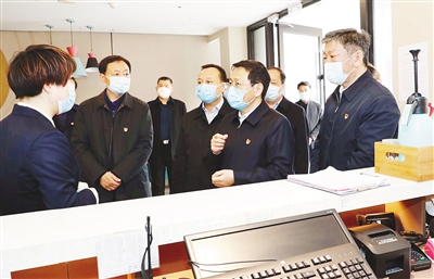 3月3日,市委書記蒿慧杰在市區(qū)人民路如家快捷酒店察看復(fù)業(yè)和疫情防控情況。記者 王慶建 攝