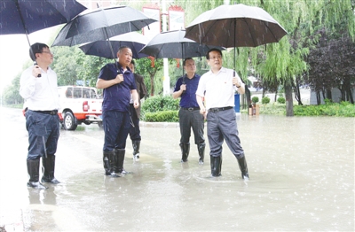 7月22日,市委書記蒿慧杰察看指導(dǎo)市區(qū)積水點(diǎn)排水和防汛工作。本報記者 王慶建 攝