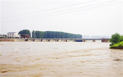 7月23日上午,記者在沙河、澧河交匯處看到,河水流速加快,水位明顯升高,河面顯得寬了不少,渾濁的河水中飄浮著大量水草。沙河節(jié)制閘處閘孔全開(kāi),正在全力泄洪,節(jié)制閘兩側(cè)南北河道的水位也已經(jīng)持平(如圖)。