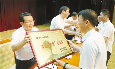 9月2日,市委書記蒿慧杰向工業(yè)“十強(qiáng)”企業(yè)代表頒獎(jiǎng)。記者 王慶建 張 佩 攝