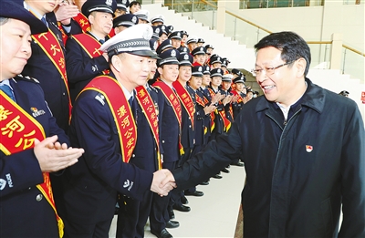 蒿慧杰指出,設(shè)立“中國人民警察節(jié)”,充分體現(xiàn)了習(xí)近平總書記和黨中央、國務(wù)院對人民警察隊(duì)伍的關(guān)心關(guān)懷。舉行慶祝首屆中國人民警察節(jié)暨2020漯河公安職業(yè)榮譽(yù)儀式,是貫徹落實(shí)黨中央、國務(wù)院決策部署的實(shí)際行動(dòng),也是市委、市政府對全市人民警察隊(duì)伍的充分肯定和高度褒獎(jiǎng)。 近年來,全市公安機(jī)關(guān)在市委、市政府的堅(jiān)強(qiáng)領(lǐng)導(dǎo)下,堅(jiān)持以習(xí)近平新時(shí)代中國特色社會(huì)主義思想為指導(dǎo),圍繞中心、服務(wù)大局,忠實(shí)履行維穩(wěn)第一責(zé)任,主動(dòng)服務(wù)發(fā)展第一要?jiǎng)?wù),始終走在防風(fēng)險(xiǎn)、保安全、護(hù)穩(wěn)定、促發(fā)展的最前沿,在安保維穩(wěn)、掃黑除惡、疫情防控、脫貧攻堅(jiān)、環(huán)保攻堅(jiān)、創(chuàng)文攻堅(jiān)等重大工作中,展現(xiàn)了公安風(fēng)采、貢獻(xiàn)了公安力量,也涌現(xiàn)出一大批先進(jìn)集體和先進(jìn)個(gè)人,充分體現(xiàn)了警察隊(duì)伍的政治品格、公仆情懷、擔(dān)當(dāng)精神。我代表市委、市政府向受表彰的先進(jìn)模范表示熱烈的祝賀,向全市廣大公安民警及其家屬致以節(jié)日的問候和崇高的敬意。當(dāng)前,我市已進(jìn)入全面推進(jìn)社會(huì)主義現(xiàn)代化建設(shè)的新階段,希望全市公安機(jī)關(guān)和廣大公安民警以“中國人民警察節(jié)”的設(shè)立為新起點(diǎn),深入學(xué)習(xí)貫徹習(xí)近平總書記關(guān)于做好公安工作的重要講話、訓(xùn)詞和指示批示精神,牢記“對黨忠誠、服務(wù)人民、執(zhí)法公正、紀(jì)律嚴(yán)明”的新時(shí)代公安工作總要求,大力弘揚(yáng)英模精神、繼承優(yōu)良傳統(tǒng),以高度的政治責(zé)任感、良好的精神狀態(tài)、扎實(shí)的工作作風(fēng),全力以赴做好維護(hù)國家安全和社會(huì)穩(wěn)定各項(xiàng)工作,為落實(shí)新時(shí)代漯河經(jīng)濟(jì)社會(huì)發(fā)展“五個(gè)一”總體思路營造良好的社會(huì)環(huán)境,以優(yōu)異成績迎接中國共產(chǎn)黨成立100周年。各級黨委、政府要進(jìn)一步關(guān)心和支持公安工作,加大綜合保障力度,落實(shí)從優(yōu)待警舉措,讓廣大公安民警工作安心、生活舒心。