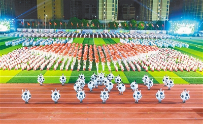 開幕式現(xiàn)場(chǎng),裁判員、運(yùn)動(dòng)員代表進(jìn)行了宣誓。來(lái)自市實(shí)驗(yàn)小學(xué)、召陵中學(xué)、許慎小學(xué)等7所學(xué)校的7000余名師生,進(jìn)行了武術(shù)、韻律操等精彩的團(tuán)體操表演。