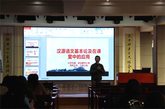 學(xué)校邀請“漢字溯源語文教學(xué)法”創(chuàng)始人——孫萬里教授助理,河南漢字大賽組委會(huì)執(zhí)行副主任杜學(xué)武為全體語文教師做培訓(xùn)。杜主任系國家級課題——漢字溯源信息化教學(xué)與語文綜合應(yīng)用水平提高課題負(fù)責(zé)人孫萬里教授助理,目前負(fù)責(zé)該課題在教學(xué)中的指導(dǎo)與普及工作。