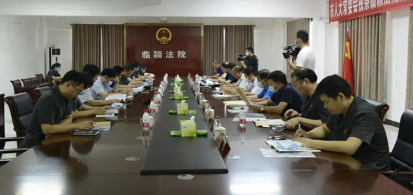 9月8日上午,漯河市人大常委會(huì)副主任趙坤炎帶領(lǐng)視察組蒞臨我院視察調(diào)研刑事審判工作。視察調(diào)研以查看設(shè)施、旁聽(tīng)庭審、評(píng)查卷宗、聽(tīng)取匯報(bào)、召開(kāi)座談會(huì)等形式進(jìn)行,漯河市中級(jí)人民法院黨組書(shū)記、院長(zhǎng)陳松林等陪同視察。
