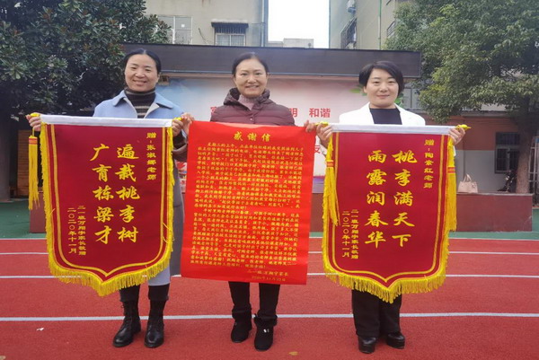 12月2日,外國語小學(xué)二一班家長走進(jìn)班級,給班主任陶素紅和張淑娜老師贈(zèng)送錦旗和感謝信,班級不時(shí)傳來陣陣掌聲,為兩位老師喝彩點(diǎn)贊。
