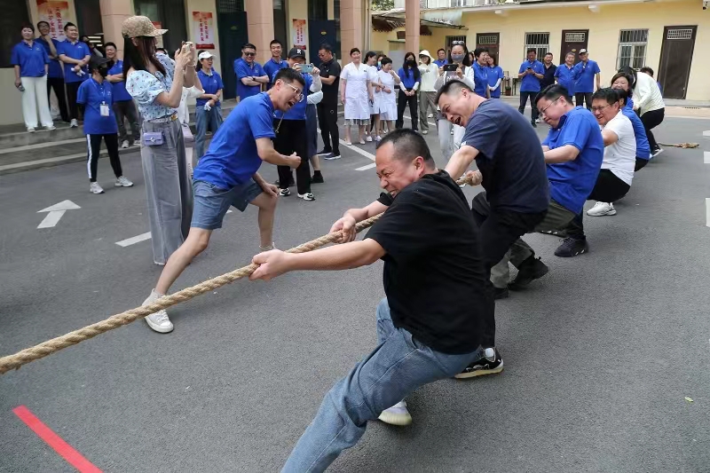 本次趣味運動會旨在通過輕松愉快的體育活動,增強職工之間團隊協(xié)作能力、減輕工作壓力,促進身心健康,享受運動帶來的快樂。運動會設置了雙龍戲珠、成語接龍、拔河比賽等項目。各個競賽項目的設置,既 有力量的角逐,又有技巧的較量;既有趣味娛樂氛圍,又有團隊比拼競爭,參賽者們齊心協(xié)力、奮勇爭先,展現出了蓬勃向上的精神風貌。拔河作為運動會的傳統(tǒng)項目,隨著裁判的第一聲哨響,將整個運動會氣氛推向了高潮。運動員們咬緊牙關、皺緊眉頭,斗志昂揚,場邊拉拉隊為各自隊員加油打氣,掌聲和歡呼聲此起彼伏,現場氣氛熱烈。參賽者們在運動中感受快樂,在快樂中提升自我,紛紛表示,此次運動會不僅是一次身體的鍛煉,更是一次加深同事朋友友誼的機會,為未來的工作和生活注入源源不斷的動力。