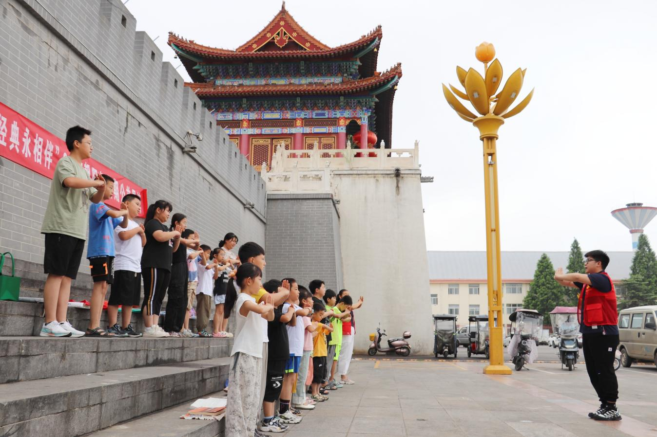 來自武漢體育學院武術學院21級的大學生志愿者陳梓赟一大早便來到了朝陽門廣場。這位“00”后利用暑假時間,帶著滿腔熱忱走進社區(qū),聯合臨潁縣南街學校為孩子們帶去一堂堂生動的武術普及課。