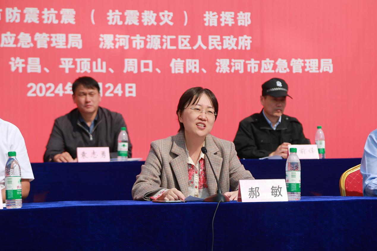 9月24日,豫南地震快速應(yīng)急聯(lián)隊2024年度聯(lián)合地震應(yīng)急演練在漯河市源匯區(qū)舉行。此次演練由漯河市防震抗震(抗震救災(zāi))指揮部主辦,漯河市應(yīng)急管理局、源匯區(qū)人民政府承辦。平頂山市、許昌市、漯河市、南陽市、周口市、駐馬店市、信陽市應(yīng)急管理局一同參加演練。河南省地震局黨組成員、副局長郝敏,漯河市政府副秘書長王振甫,漯河市應(yīng)急管理局黨委書記、局長孫全忠, 源匯區(qū)委副書記、區(qū)政府區(qū)長史一鳴等出席活動。