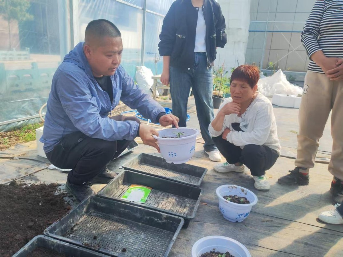 依靠著園林中心專家團隊技術優(yōu)勢,趙基元搭建起了立體化技術支撐網(wǎng)絡:在種植端,邀請園林專家開展“理論+實操”雙模教學,將基質配比、控溫催芽等12項核心技術分解為可視化操作流程;在管護端,建立“云上花匠”跟蹤指導平臺,通過新媒體實時解決水肥管理、病蟲害防治等難題;在品控端,制定《優(yōu)質種苗培育標準》,將苗株優(yōu)質率從60%提升至85%。村民潘大姐展示著學習筆記:“現(xiàn)在既會修剪月季接穗,又能掌握草花輪作節(jié)奏,相當于考取了‘雙科證書’”。