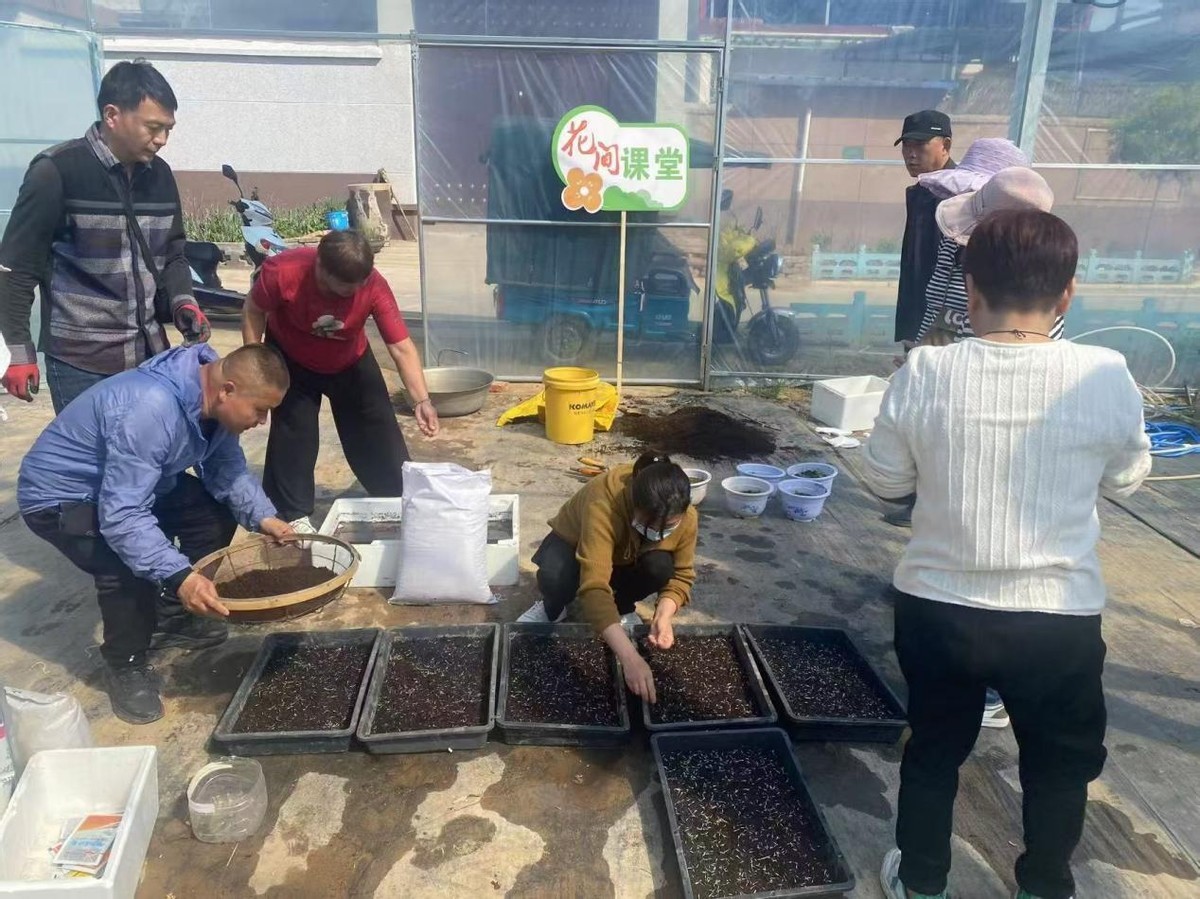 園林技術人員到村育苗大棚現(xiàn)場播種示范 楚琦偉 攝