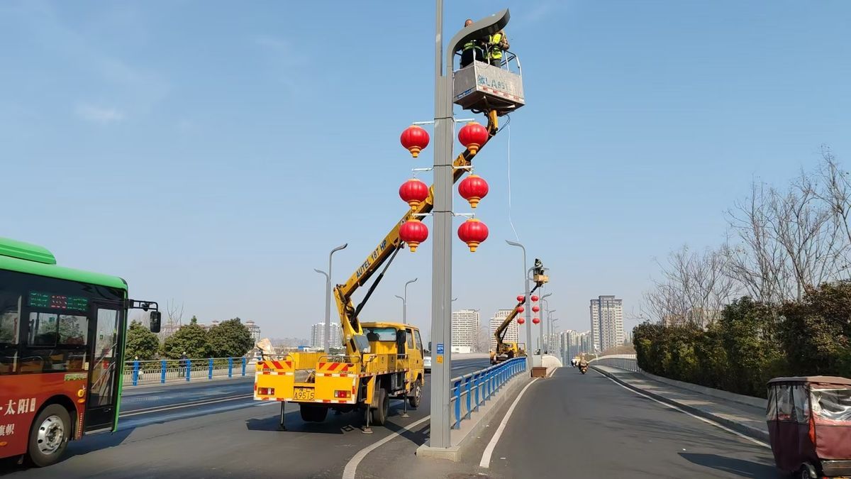 迎春燈飾安裝依托行道樹(shù)、路燈桿,以傳統(tǒng)紅燈籠為主,滿天星、藤球燈、星星燈等造型燈交叉懸掛點(diǎn)綴裝飾,光源以紅色、橙色、黃色暖色系為主,打造出溫馨祥和、紅紅火火的新年味兒。為早日完成安裝工作,該中心組織近百名人員,多班組同時(shí)在各燈飾安裝點(diǎn)位施工作業(yè),不分白天黑夜,加班加點(diǎn),緊鑼密鼓地高效推進(jìn)。