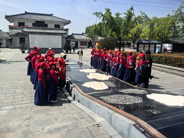 五一期間,許慎文化園,孩子們在漢字大道旁認(rèn)真傾聽講解