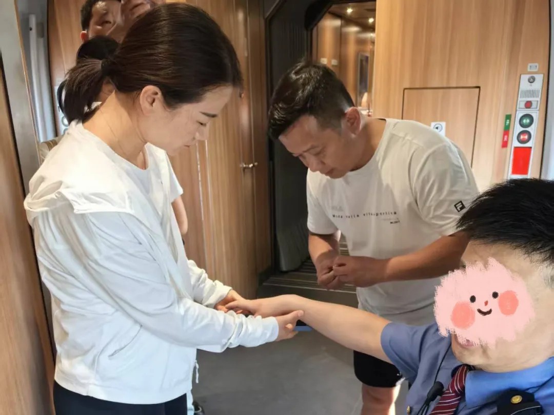 抵達(dá)現(xiàn)場(chǎng),他們發(fā)現(xiàn)一名身著列車(chē)員制服的男性工作人員面色慘白、冷汗淋漓,因腰部劇痛蜷縮并呻吟。憑借豐富經(jīng)驗(yàn),兩人判斷其可能是腎結(jié)石引發(fā)的腎絞痛。在列車(chē)工作人員協(xié)助下,潘建濤施展中醫(yī)針灸,李璐同步監(jiān)測(cè)生命體征、安撫患者。經(jīng)救治,患者疼痛明顯減輕。他們向列車(chē)方交代后續(xù)注意事項(xiàng)后默默返回座位。