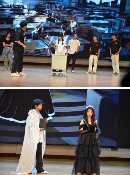 活動現(xiàn)場,演出學(xué)生憑借扎實的臺詞功底、細(xì)膩的肢體語言與極具感染力的情緒表達,將角色刻畫得入木三分。幕后團隊同樣“星光閃耀”,從手繪道具、動態(tài)背景投影到音效配合,每個環(huán)節(jié)都彰顯著同學(xué)們的匠心巧思。現(xiàn)場的評委老師從劇本創(chuàng)意、表演技巧、舞臺效果等多個維度對各劇目進行了綜合評分,。最后夢想合唱團的合唱“世界贈與我”與說文解字社團的“字圣故里美少年 說文解字話傳承”環(huán)節(jié),更是點燃全場熱情將全場氣氛推入高潮,將藝術(shù)欣賞與音樂文學(xué)深度交融。