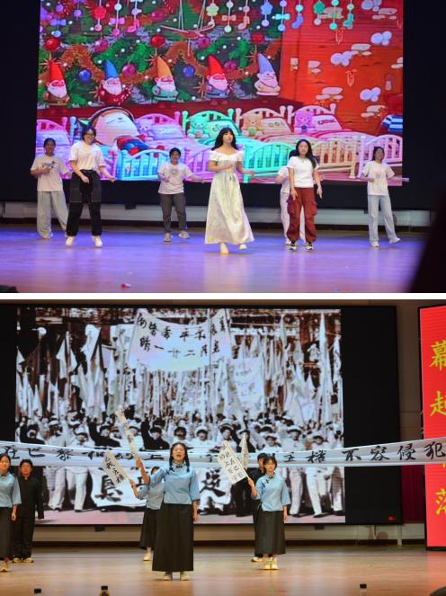 當(dāng)天演出在漯彎春韻的舞蹈中拉開帷幕,從《寶玉大婚》《西安事變》《白雪公主和丫鬟們》《破曉》等經(jīng)典劇目的深度改編,到聚焦校園生活、社會熱點的劇本《再看五分鐘》《當(dāng)考試還剩15分鐘》《誰逼瘋了周日》《回不去的十七歲》等,同學(xué)們以敏銳的觀察力捕捉生活細(xì)節(jié),用戲劇語言傳遞青春思考。高一(13)班的《破曉.她時代》通過講述一群率先覺醒的女大學(xué)生,沖破了舊思想的牢籠,以青春和熱血,為自由和平等而吶喊;高一(15)班高一(16)班的《文字彼岸的他們》通過時空交錯的敘事,講述了三代女性的讀書世界,倡導(dǎo)讀書的重要性。高一(9)班的《金陵十三釵》則以極具現(xiàn)代感的舞美設(shè)計和沉浸式表演,賦予傳統(tǒng)故事新的生命力。高一(3)班高一(4)班《回不去的17歲》以兩代人的真實經(jīng)歷改編,引發(fā)學(xué)生對青春,責(zé)任和奉獻的思索,引發(fā)了陣陣掌聲。