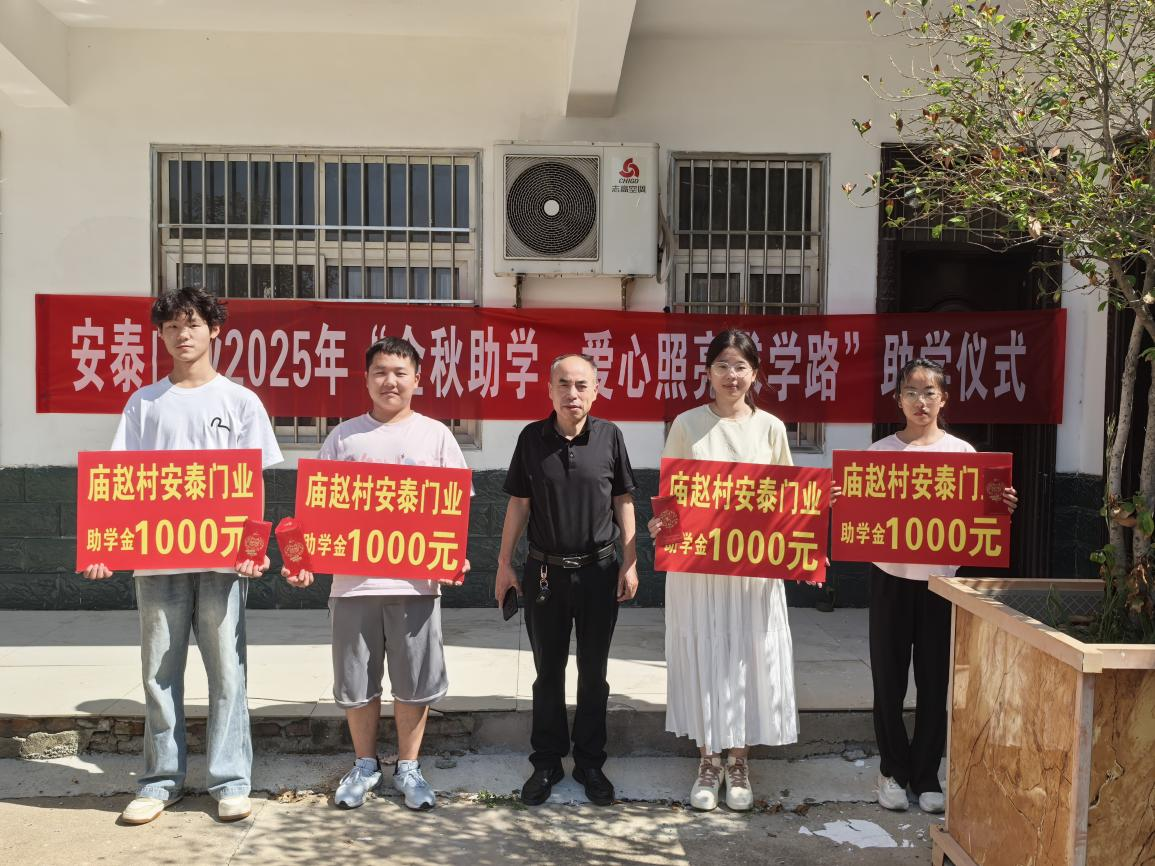 2025年8月22日上午,龍城鎮(zhèn)廟趙村洋溢著溫暖與希望的氛圍,愛心企業(yè)安泰門業(yè)2025年“金秋助學(xué)·愛心照亮求學(xué)路”助學(xué)儀式在這里隆重舉行,為村內(nèi)4名即將踏入大學(xué)校門的優(yōu)秀學(xué)子送去每人1000元助學(xué)金,以實(shí)際行動履行企業(yè)社會責(zé)任,鼓勵村里的優(yōu)秀學(xué)子努力奮進(jìn),幫助他們更好地開啟大學(xué)生活。