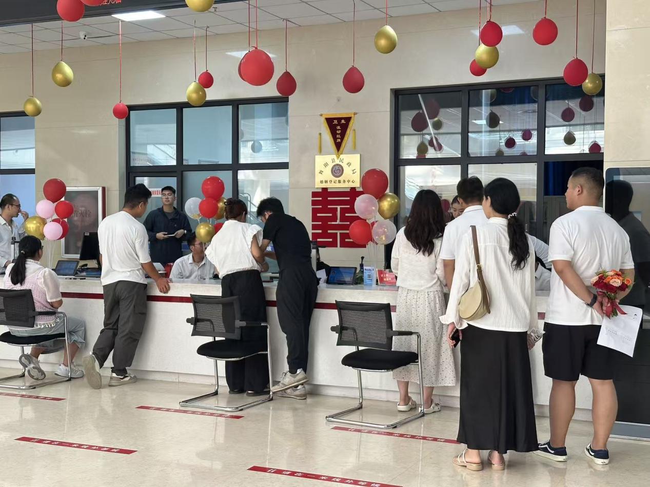 舞陽(yáng)縣審信局創(chuàng)新“高效辦成一件事”服務(wù),弘揚(yáng)中華優(yōu)秀傳統(tǒng)文化,傳遞七夕“愛(ài)情、家庭、和諧”的美好寓意,推動(dòng)政務(wù)服務(wù)與文化傳承的融合,用政務(wù)溫度點(diǎn)亮傳統(tǒng)文化,以貼心服務(wù)傳遞幸福能量,實(shí)現(xiàn)婚姻登記、家庭政策宣傳與新時(shí)代婚俗新風(fēng)倡議有機(jī)結(jié)合。
