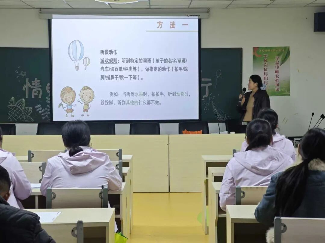 接著楊老師根據(jù)院內兒童的情況,詳細講解了“分層任務拆解法”。即充分貼合院內兒童特點,將目標拆為“小步驟”,如教認“杯子”,先讓孩子觸摸建立安全感、再聽發(fā)音、最后指認,同時結合眼神交流與鼓勵話語,用情感吸引孩子專注,積累孩子信心。