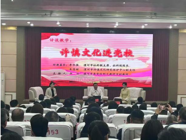 為深入學習習近平文化思想,貫徹落實中央和省委、市委關于文化建設的工作部署,推動我市“四大本土文化”創(chuàng)造性轉化、創(chuàng)新性發(fā)展,11月6日上午,市社科聯(lián)主席、社科院院長李華強,市許慎文化研究保護中心副主任朱菲輝受邀走進黨校秋季學期第二期主體班課堂,開展了“許慎文化進黨校”專題訪談教學,市委黨??萍嘉幕萄惺腋敝魅?、副教授華冰主持。