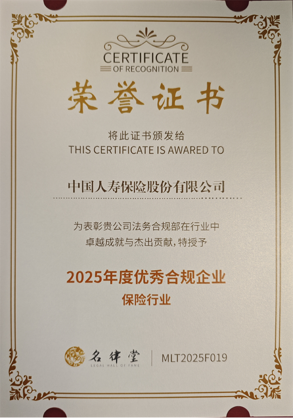 近日,在國(guó)內(nèi)法律行業(yè)交流平臺(tái)名律堂組織的“2025年企業(yè)合規(guī)先鋒榜”評(píng)選項(xiàng)目中,中國(guó)人壽保險(xiǎn)股份有限公司(以下簡(jiǎn)稱“中國(guó)人壽”,股票代碼:601628.SH,2628.HK)榮膺保險(xiǎn)行業(yè)“2025年度優(yōu)秀合規(guī)企業(yè)”。