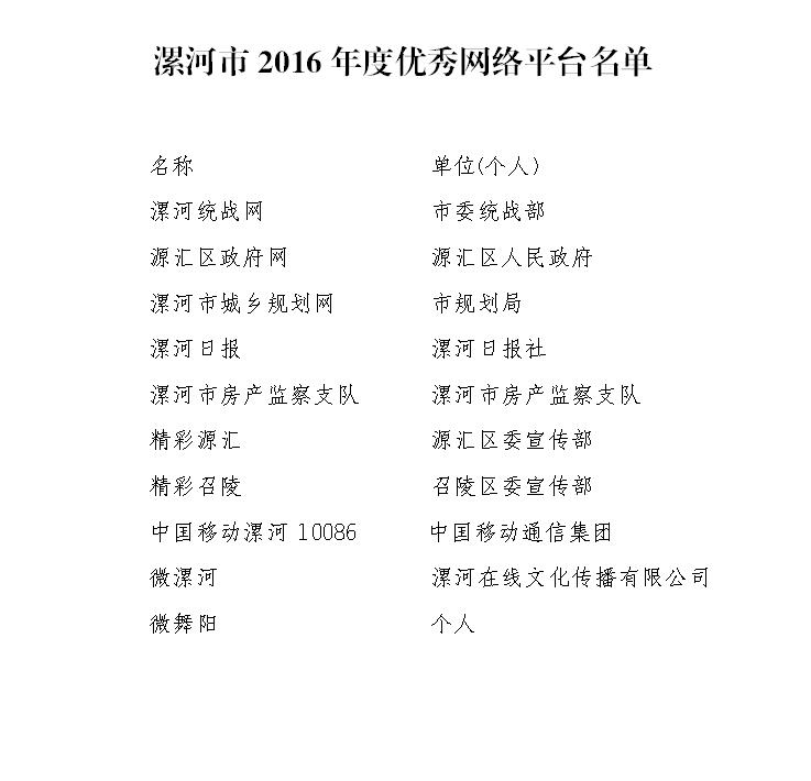 3. 漯河市2016年度優(yōu)秀網(wǎng)絡(luò)平臺名單