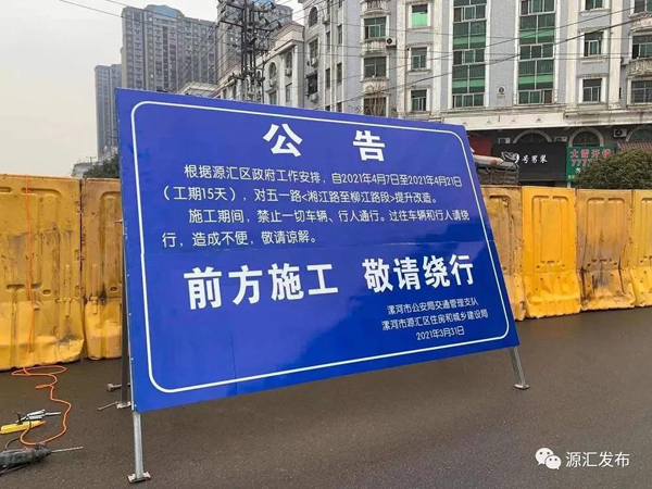 4月7日上午,源匯區(qū)公路養(yǎng)護中心正式對五一路(湘江路至柳江路段)進行道路提升改造,實行全封閉斷行,施工期間,禁止一切車輛及行人通行。