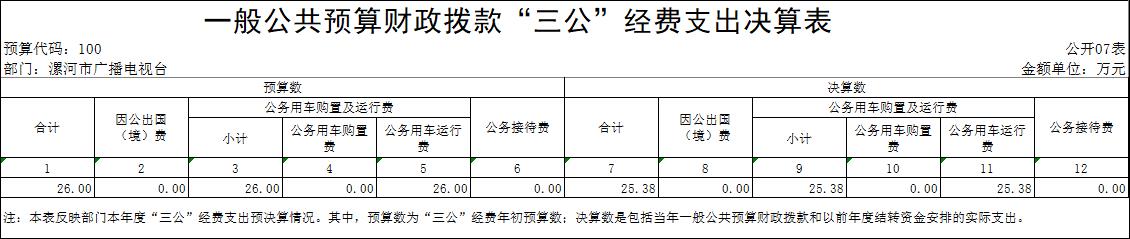 十、“三公”經費:納入同級財政預決算管理“三公”經費,指單位使用財政撥款安排的因公出國(境)費、公務用車購置及運行費和公務接待費。其中,因公出國(境)費反映單位公務出國(境)的國際旅費、國外城市間交通費、住宿費、伙食費、培訓費、公雜費等支出;公務用車購置及運行費反映反映單位公務用車車輛購置支出(含車輛購置稅)及租用費、燃料費、維修費、過路過橋費、保險費、安全獎勵費用等支出;公務接待費反映單位按規(guī)定開支的各類公務接待(含外賓接待)支出。