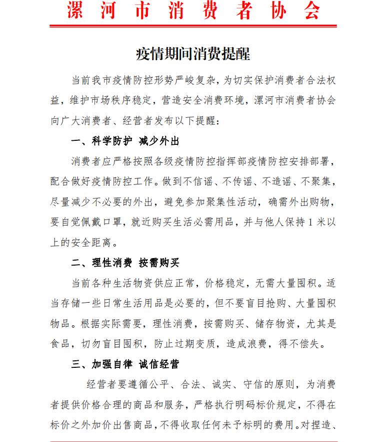 疫情期間消費(fèi)提醒