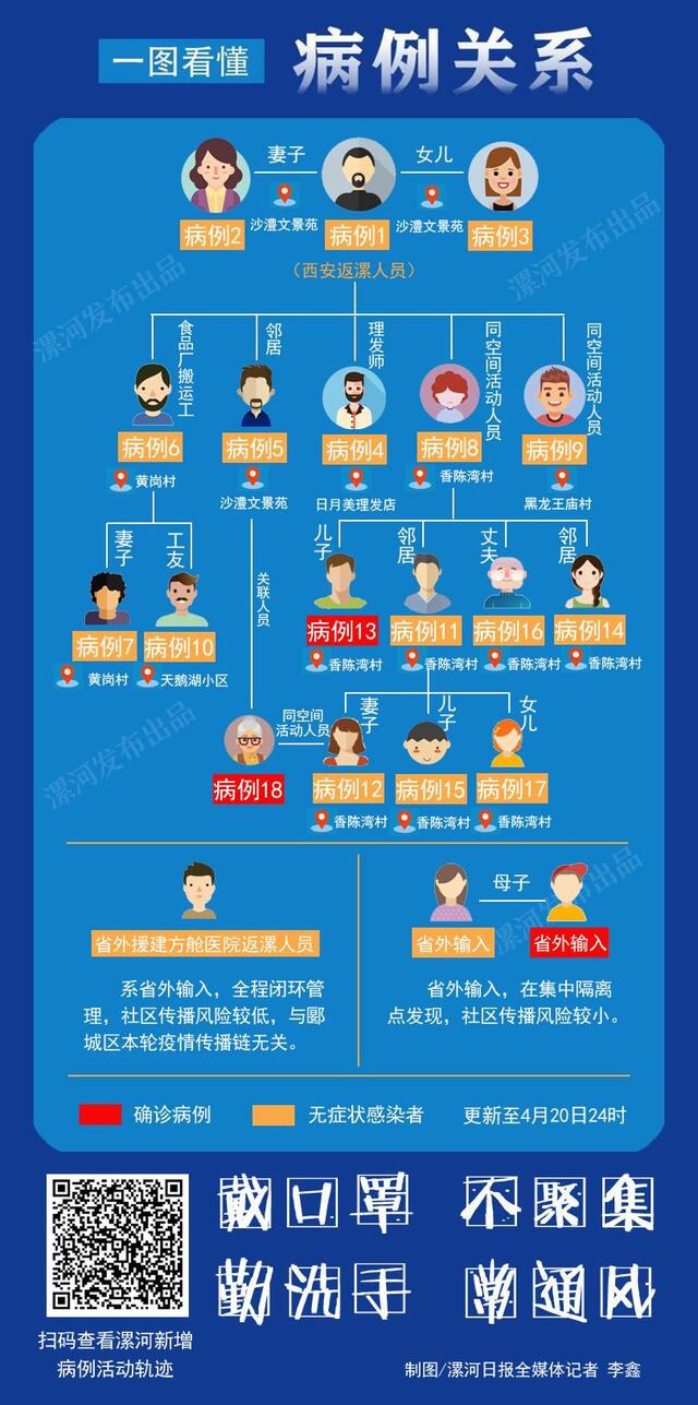 病例18:系病例5的關(guān)聯(lián)人員,病例12的同空間活動人員。近14天內(nèi)未出漯。